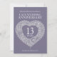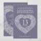 Invitaciones de aniversario de bodas de encaje corazón 13. Hermoso efecto de encaje en borde de corazón impreso gráficos invitaciones de aniversario de bodas de encaje decimotercero. Personalice con los detalles de su fiesta de bodas de encaje. El aniversario número 13 se asocia tradicionalmente con el encaje y el corazón simboliza el amor. Otros productos y aniversarios coincidentes disponibles. Gráficos originales y diseño de Sarah Trett para www.mylittleeden.com