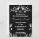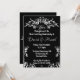 Estas invitaciones de aniversario de bodas de plata presentan elegantes detalles florales con volutas plateadas sobre un fondo negro simple. Con la posibilidad de personalizar la información de su evento como desee, puede utilizar este diseño también para invitaciones de cumpleaños de 25 años. Todos mis diseños son © Novastorm Designs