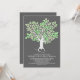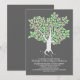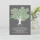 Invitación nupcial moderna pero vintage con un árbol floreciente y su forma única de raíces - corazón de amor. Una invitación perfecta para los ambientes de boda gris pizarra y verde menta con un antiguo arbolado.