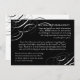 NOTA: Información coincidente sobre direcciones para llegar y alojamiento de hotel para sus invitados de fuera de la ciudad. No necesita imprimir la misma cantidad que sus invitaciones, simplemente envíeselas a esos familiares y amigos que no están familiarizados con su área. COLECCIÓN DE DISEÑO: Fuentes elegantes y divertidas anuncian el mensaje "¡Comamos, bebamos y casémonos!" en un delicioso y sofisticado conjunto de invitaciones de boda con un toque caprichoso. En negro y blanco clásico profundo, es lo mejor de lo vintage con un toque moderno. El lado frontal tiene el texto de su invitación que se personaliza fácilmente a través de la plantilla rodeada de elementos tipográficos en espiral. Estos giros están hechos de diseños de caligrafía antigua. En el reverso están los giros coincidentes en negro sobre blanco. Hay un conjunto completo de productos disponibles con este diseño y podemos hacerlo en cualquier combinación de colores que desee.