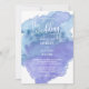 Elegante pero moderno acuarela / acuarela invitaciones abstractas de boda. Los colores se mezclan con azul acuático oscuro y claro, verde azulado, turquesa, violeta, blanco y violeta. Perfecto para bodas de playa. Se puede cambiar la redacción. Comuníquese con el diseñador para obtener más variaciones. Encontrado en la colección de bodas 'AZUL DE COLOR DE AGUA'.