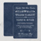 ¡Estas invitaciones de boda con temática acuarela son extravagantes y románticas! Las invitaciones incluyen caligrafía, tipografía moderna, desplazamiento floral sobre un fondo acuático en un esquema de color azul y blanco.