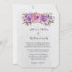 Invitaciones caseras personalizadas con un patrón rústico de flores de acuarela vintage en tonos violeta y lavanda con fondo de patrón de madera y texto de estilo con letras a mano. Personalizar estas invitaciones con los detalles de su boda. Disponible en productos de coincidencia para todas las necesidades de su boda.