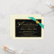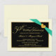 Cree sus propias invitaciones personalizadas para la fiesta del 50º aniversario de bodas: marfil y negro con cinta aqua impresa y corazón de piedra preciosa dorada. Tipografía clásica con aspecto grabado y letra dorada con florituras de estilo vintage: elegante, lujo asequible y diseñado exclusivamente para usted. Simplemente agregue los nombres, la fecha y los detalles para celebrar este hito especial de aniversario. **NOTA: Todos los elementos de este diseño son parte de la imagen IMPRESA; la cinta, el broche con joyas y el marco NO están levantados, estampados en relieve ni se presentan como adornos reales. Dimensionado para tarjetas de invitación pequeñas. Haga clic en "Personalizar" para cambiar el tamaño, las opciones de papel o las opciones de fuente. Otros tamaños y estilos disponibles en la galería. © Teri Francis. Conjuntos coordinados con estampillas y tarjetas