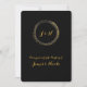 Invitaciones de círculo de glamour de destellos negros de papel de aluminio dorado. Personalice para cualquier evento.
