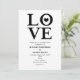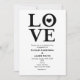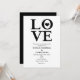 Invitaciones de compromiso de boda negras y blancas de AMOR. El color de fondo se puede cambiar a cualquier color.