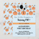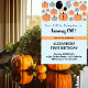 Estas invitaciones de cumpleaños 1º de Halloween en azul y naranja con estas calabazas lindas en la parte delantera y el patrón de calabaza y hojas en la parte trasera (ambiente de otoño), es para bebé niño / para niños.
