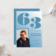 Invitaciones de cumpleaños 63 para él con gradiente azul Retro Foto