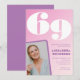 Invitaciones de cumpleaños 69 Pink Retro Foto gradiente simple