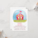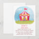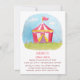 Una invitación con una copia escaneada de una ilustración de acuarela de una carpa de carnaval roja y blanca sobre cielos azules y césped verde. Perfecto para niños que tienen una fiesta de cumpleaños con tema de carnaval en el patio trasero. Esto también es perfecto para las escuelas que están celebrando un carnaval escolar. Personalice fácilmente con los detalles de su fiesta.