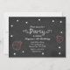 Invitaciones de cumpleaños con lunares de pizarra de mariquita.