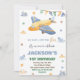 Invitaciones de cumpleaños de avión amarillo grisáceo