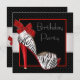 Invitaciones de cumpleaños elegantes de cebra roja. Esta bonita invitación de cumpleaños de zapato de tacón alto de cebra roja y negra se personaliza fácilmente para su evento simplemente eligiendo el botón "¡Personalízalo!" para comenzar a agregar los detalles del evento, el estilo de letra, el tamaño y color de la letra, y la redacción. Tenga en cuenta que todos los diseños de tarjetas e invitaciones que encontrará en Zazzle son gráficos impresos sin joyas reales, lazos, partes o piezas elevadas, grabadas o agregadas.