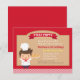 ¿Necesitas una idea para la fiesta de cumpleaños de un niño? ¿Qué tal una celebración de fiesta de pizza y hacer que los niños invitados participen en la preparación de sus propias pizzas? Esta invitación presenta a un pequeño chef con sombrero y atuendo de chef que está listo para servir una pizza en una bandeja. La pizza tiene muchas coberturas coloridas de rodajas de pimiento y cebolla, champiñones y salami de pepperoni. Un patrón de baldosas rojas y blancas a cuadros para el fondo. Personaliza fácilmente con los detalles de tu fiesta en el espacio disponible. También es ideal para fiestas con tema italiano.