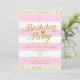 Invitaciones de cumpleaños de corazón rosa blanco y dorado. Artículos coincidentes disponibles.