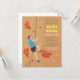 Una invitación moderna y trendy de escalada en roca para invitados del cumpleañero que son entusiastas de la aventura. Tiene una ilustración de un hombre atlético con equipo de escalada escalando una pared marrón de escalada interior con varios agarres y obstáculos. Personalice con los detalles de su fiesta en el lado de la invitación. ¡Genial para pre-adolescentes, adolescentes y clubes y eventos de escalada en roca!