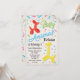 Impresionantes invitaciones para fiestas de cumpleaños de animales Fiestas. Cuenta con animales de globo, perro y jirafa con tiras coloridas y confeti sobre un fondo de lino falso. ¡Genial para un chico o fiesta de cumpleaños de chica! Ilustracion dibujado a mano por McBooboos