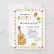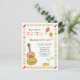 Una fiesta para adultos no tiene que ser aburrida. En su lugar, ¡planea una colorida Fiesta Mexicana! Esta invitación es perfecta con su vibrante elección de colores como rojo, azul, verde y amarillo. Cuenta con una guitarra con un patrón de triángulos alrededor de su borde, un par de maracas, taco y margaritas. Los invitados estarán emocionados por la música, la comida y las bebidas y un día divertido. Un patrón de rayas coloridas decora el borde con chili en las esquinas. Personaliza fácilmente con los detalles de tu fiesta.