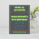 Esta invitación audaz y moderna es perfecta para niños de la Gen Z y Gen Alfa que quieren que su fiesta sea toda una vibra. Con un fondo de carbón elegante y acentos azules y verdes neón, está diseñada para destacarse. Personaliza los detalles para hacerla única. Genial para cualquier niño que se preocupa por la estética.