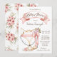 Invitaciones de baby shower de niña con adorable zorro bebé en un hermoso fondo floral rosa. Estas invitaciones de baby shower de zorro son fácilmente personalizables para su evento simplemente agregando sus detalles.