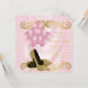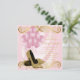 Invitación de cumpleaños glamurosa rosa y dorada para mujer con hermosos zapatos de tacón alto con brillo dorado, globos rosas, champán y perlas sobre un fondo de satén rosa lujoso y glamuroso. Esta elegante invitación de cumpleaños rosa y dorada se personaliza fácilmente para su evento simplemente agregando sus datos en el estilo de letra y color, redacción y diseño de su elección. También puede mover o eliminar los remolinos, champán, globos y fondo de satén. Este es un diseño impreso sin satén real, joyas, perlas, brillo, etc.