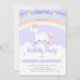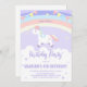 Invitaciones de cumpleaños de Unicornio con el arcoiris púrpura