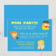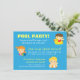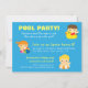 Invita a familiares y amigos a una sesión relajada y divertida con esta colorida invitación a una fiesta en la piscina, perfecta para el verano. La invitación a la fiesta en la piscina muestra a un trío de niños adorables divirtiéndose en el agua azulada con varios objetos de piscina como un patito de goma, una pelota de playa y una boya. La parte trasera tiene un flotador de patito de goma adorable. Es perfecta para cualquiera que esté planeando un cumpleaños en una piscina en el patio trasero o una piscina inflable, o que celebre el evento en un parque acuático o piscina de un club. Personaliza fácilmente con los detalles de tu fiesta.