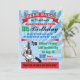 Impresionante invitación de cumpleaños estilo cartel de fiesta de cerveza con ilustraciones de clip art vintage antiguas contra un fondo azul de ráfaga de sol con tipografía divertida. Moderno y genial para ese chico o chica que ama la cerveza en su cumpleaños. Por favor, contácteme con cualquier pregunta, problema o cambio. ¡Puedo ayudarte!