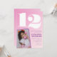 Invitaciones de cumpleaños número 12 rosadas con gradiente de foto retro para ella