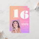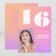 Invitaciones de cumpleaños número 16 rosadas con gradiente para su foto retro