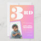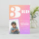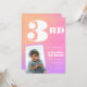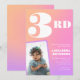 Invitaciones de cumpleaños número 3 rosadas y naranjas para ella con Foto Retro gradiente