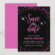 Invitaciones de cumpleaños número 3 rosadas Guarden la fecha Glam chic negro brillo destellos