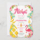 Divertida invitación de cumpleaños con tema de fiesta tropical. Perfecta para una fiesta con tema hawaiano, fiesta de playa, evento de fiesta de verano. Agregue el hito de cumpleaños y otros detalles de la invitación según sea necesario. Para ediciones personalizadas y artículos coincidentes, comuníquese con la diseñadora LeahG.