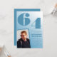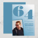 Invitaciones de cumpleaños número 64 con gradiente azul para él con foto retro