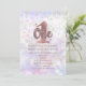 Invitaciones de cumpleaños número uno con brillo iridiscente.