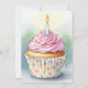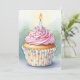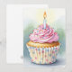 Invitaciones de cumpleaños de color agua con un delicado quequito de cumpleaños rosa con velas encendidas