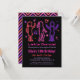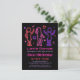 ¡Organiza una fiesta de cumpleaños con decoraciones de luces de neón! La invitación viene con siluetas de chicas bailando con notas musicales y estrellas en el fondo para decorar. En una paleta de colores femeninos de rosa, morado y rojo, es ideal para cumpleañeras y edades desde preadolescentes hasta adolescentes. Personaliza fácilmente con los detalles de tu fiesta de cumpleaños. ¡Vamos a bailar!