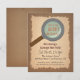 Una invitación de cumpleaños para fiesta de búsqueda del tesoro para esa divertida fiesta de búsqueda del tesoro. Tiene una lupa sobre el fondo de papel con textura grunge. Ideal para fiestas con niños y un lugar al aire libre para buscar. Personaliza fácilmente con los detalles de tu fiesta.
