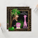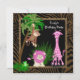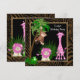 Invitaciones de cumpleaños con tema de safari de la jungla rosa con mono, jirafa, rana y león lindos. Personalice la parte delantera y trasera para su evento simplemente eligiendo el botón "¡Personalízalo!" para comenzar a agregar los detalles de su evento, estilo de fuente, tamaño y color de la fuente, y redacción. Algunos gráficos gráficos ©delightful-doodles. Tenga en cuenta que todos los adornos para pastel, tarjetas y diseños de invitaciones que encontrará en Zazzle son gráficos impresos sin joyas reales, lazos, partes o piezas en relieve, repujados o agregados.