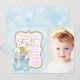 Invitación a fiesta de té con una princesa de bonitos destellos azules sobre un fondo de bokeh azul. Esta invitación de fiesta de té en tonos rosa, azul y dorado se personaliza fácilmente para tu evento añadiendo tu foto y detalles del evento en el estilo de letra y color que desees. Es un diseño impreso sin purpurina real.