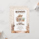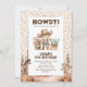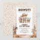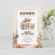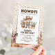 Invitaciones de cumpleaños infantiles rústicas del oeste con confeti de fiesta, escenario de postre con caballos, un vaquero lindo y una plantilla de celebración moderna que es fácil de personalizar.