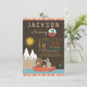 Invitaciones de cumpleaños de pesca con adorables animales del bosque pescando en un bote en un lago de montaña. Estas invitaciones de pesca para cualquier número se personalizan fácilmente para su evento simplemente agregando sus datos.