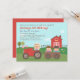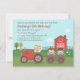 Invite a sus hijos invitados a una granja o un tema de granja de cumpleaños y tengan un día divertido y memorable con actividades agrícolas. Esta linda y colorida invitación de cumpleaños con tema de granja es perfecta. Cuenta con un tractor rojo tirando de un vagón para que los niños puedan dar un paseo en heno. Un granero en el fondo con varios animales como cerdos, gallo y pollitos. Un tema neutral en cuanto al género que es adecuado tanto para niños como para niñas de cumpleaños. Personalice fácilmente con los detalles de su fiesta.