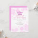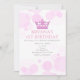 Invitaciones para fiesta de cumpleaños reales con corona rosa y puntos.