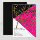 Invitaciones de cumpleaños rosa negro y dorado con bloques de color. Personalice para cualquier evento.
