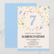 Invitaciones de cumpleaños simples de 7 años Confetti Modernas caligrafía tipografía hito clásico elegante colorido femenino