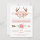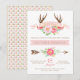 Invitaciones de cumpleaños de niña wild one con cuernos de flores de acuarela y flecha con pancarta de nombre y fondo tribal coordinado. Puede personalizar fácilmente estas adorables invitaciones de cumpleaños tribales para niñas para su evento simplemente agregando sus datos. También puede cambiar el texto en la pancarta del cuerno.