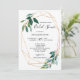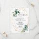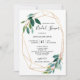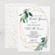 Nuestras invitaciones de despedida de soltera con vegetación en acuarela muestran un hermoso marco geométrico junto con delicadas hojas verdes y fuentes encantadoras. La parte posterior presenta confeti dorado.