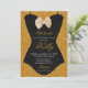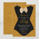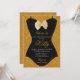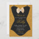 Fondo de brillo dorado con obra de arte en forma de corsé de encaje negro es una forma linda de invitar a sus invitados a una Despedida de Soltera de Lencería.