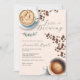 Celebra a la futura novia con nuestras invitaciones para despedida de soltera "Love Is Brewing", diseñadas para una celebración acogedora en un bar de café en tonos cálidos de marrón y crema. Con un latte de acuarela con espuma en forma de corazón, granos de café dispersos y acentos chic inspirados en un café, esta invitación "Love Is Brewing" establece el tono perfecto para una celebración moderna y acogedora.